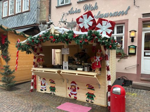 Sehen Sie hier einige Eindrücke von unserem Stand auf dem Weihnachtsmarkt. Die Atmosphäre ist festlich und einladend, und wir freuen uns darauf, Sie bei uns begrüßen zu dürfen. Besuchen Sie uns für leckere Wraps und mehr auf dem Wertheimer Weihnachtsmarkt: Hier Informationen & Anreise: https://www.weihnachtsmarkt-wertheim.de/anfahrt-parken