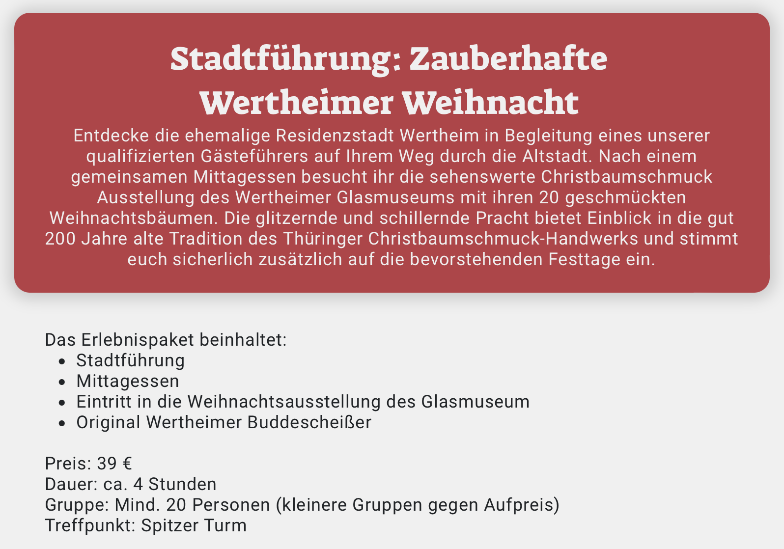 Der Weihnachtsmarkt hat eine lange Tradition und ist ein wichtiger Bestandteil der regionalen Kultur in Wertheim. Jedes Jahr zieht der Markt zahlreiche Besucher an, die die historischen Stände erkunden und sich von den festlichen Angeboten inspirieren lassen. Die Verbindung von Geschichte und modernen Elementen schafft eine einmalige Atmosphäre, die Besucher in ihren Bann zieht.